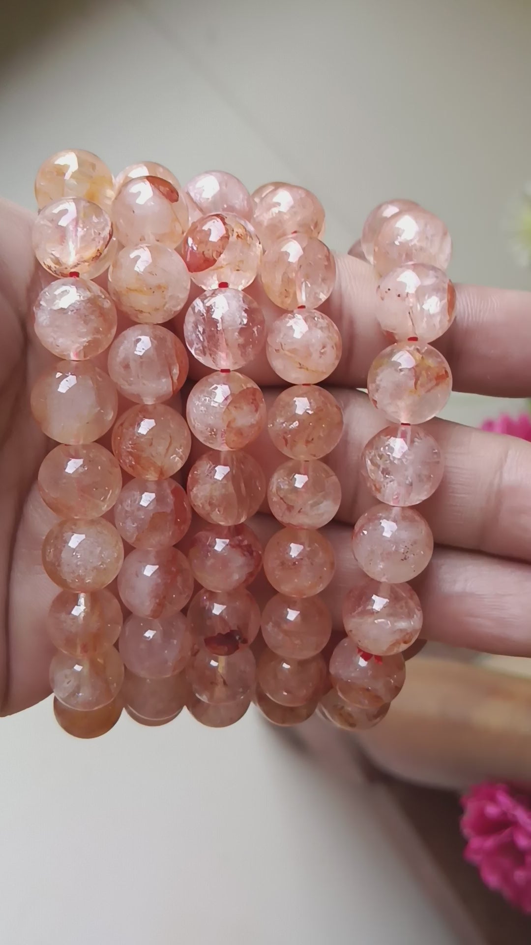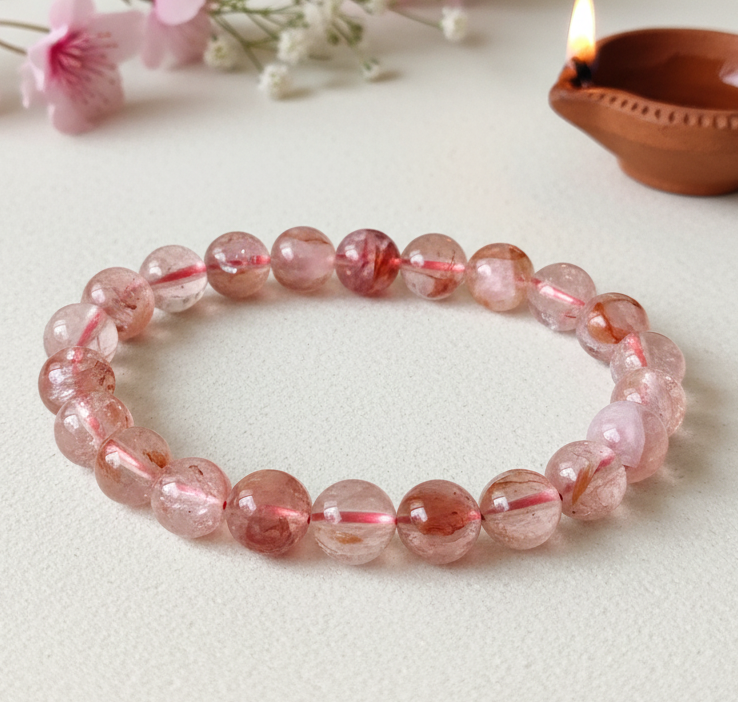 9 to 10mm PREMIUM fire quartz stretchable bracelet.