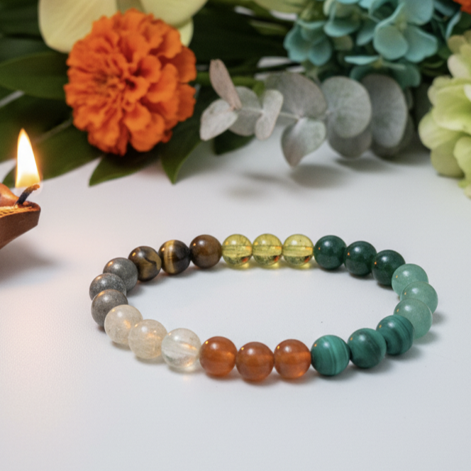 The Complete Prosperity Bracelet is designed with a selection of crystals known for their association with abundance and financial success. Each crystal is carefully chosen to enhance personal prosperity and promote a positive mindset, potentially increasing focus and motivation.