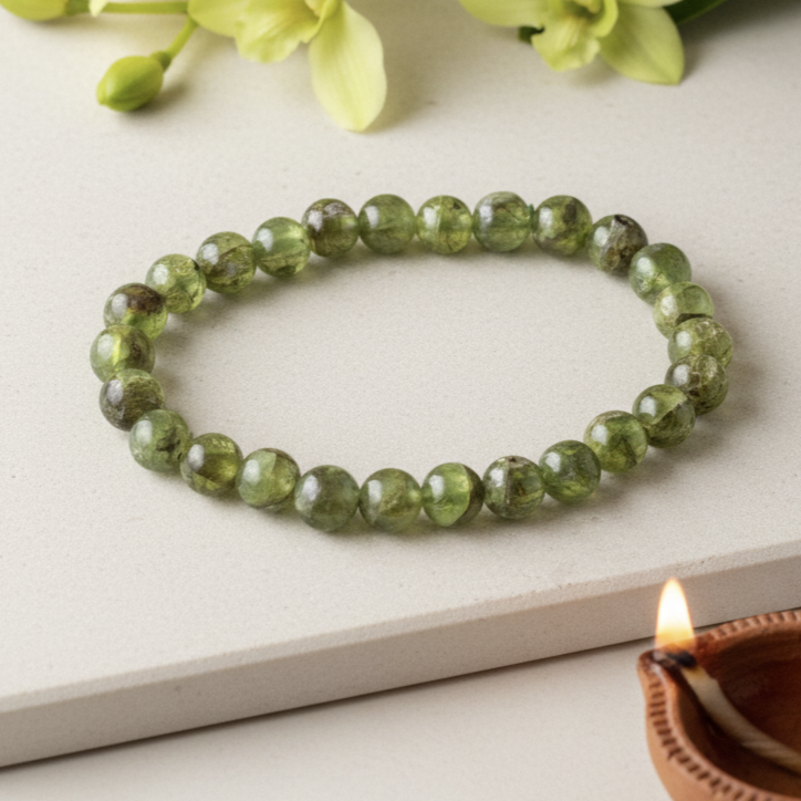 💚 Peridot Crystal Bracelet 8mm– Stone of Abundance & Heart Healing