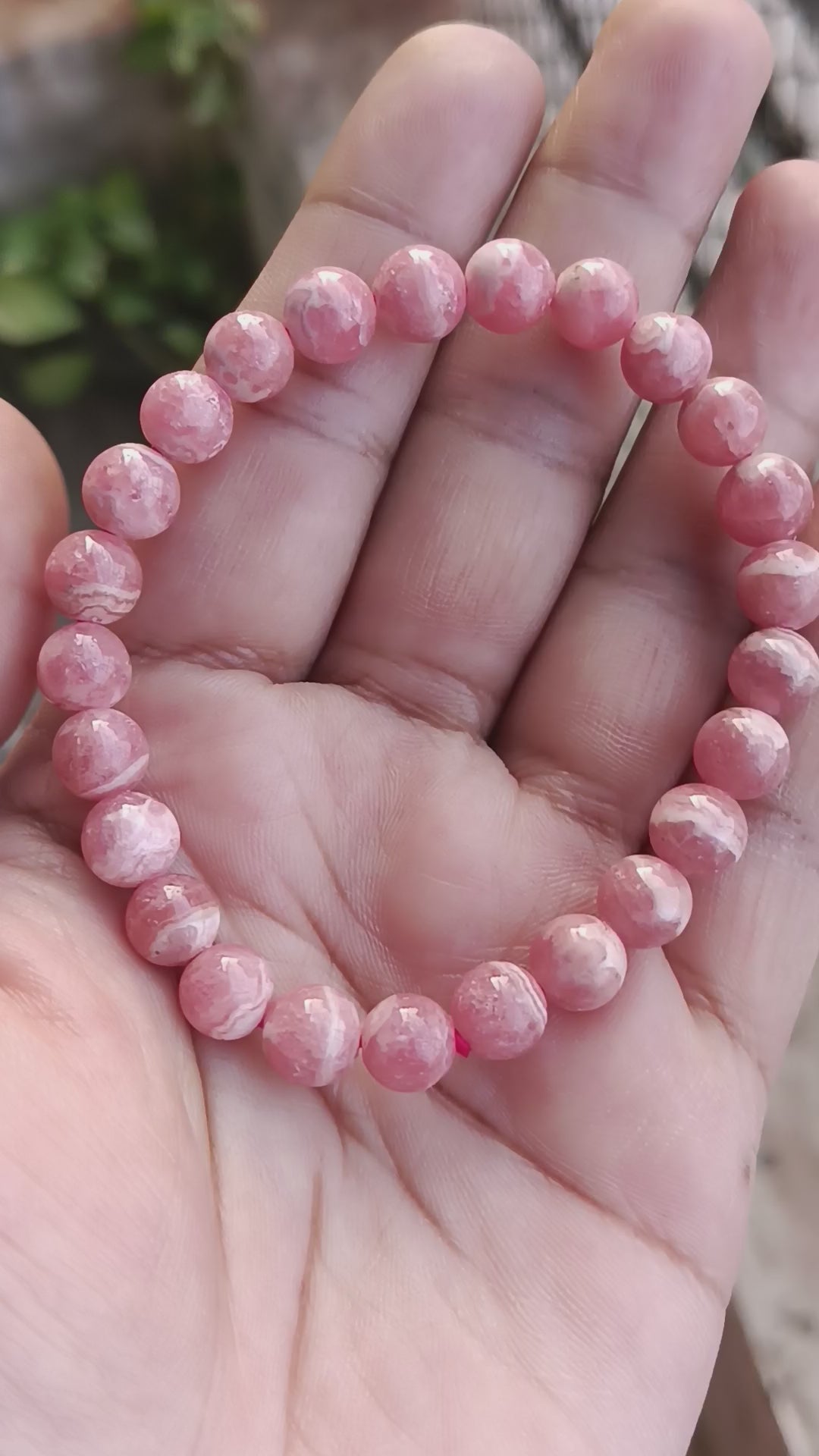 HIGH QUALITY NATURAL ARGENTINA RHODOCHROSITE 7.5MM PLAIN ROUND SHAPE STRETCHABLE BRACELET.