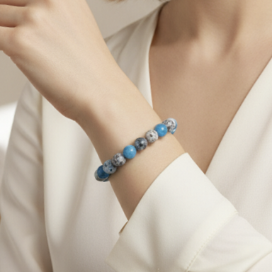 Crafted with rare K2 Jasper from the Himalayas and high-vibration Blue Apatite, this exquisite bracelet is designed to awaken your inner radiance and elevate your personal magnetism.